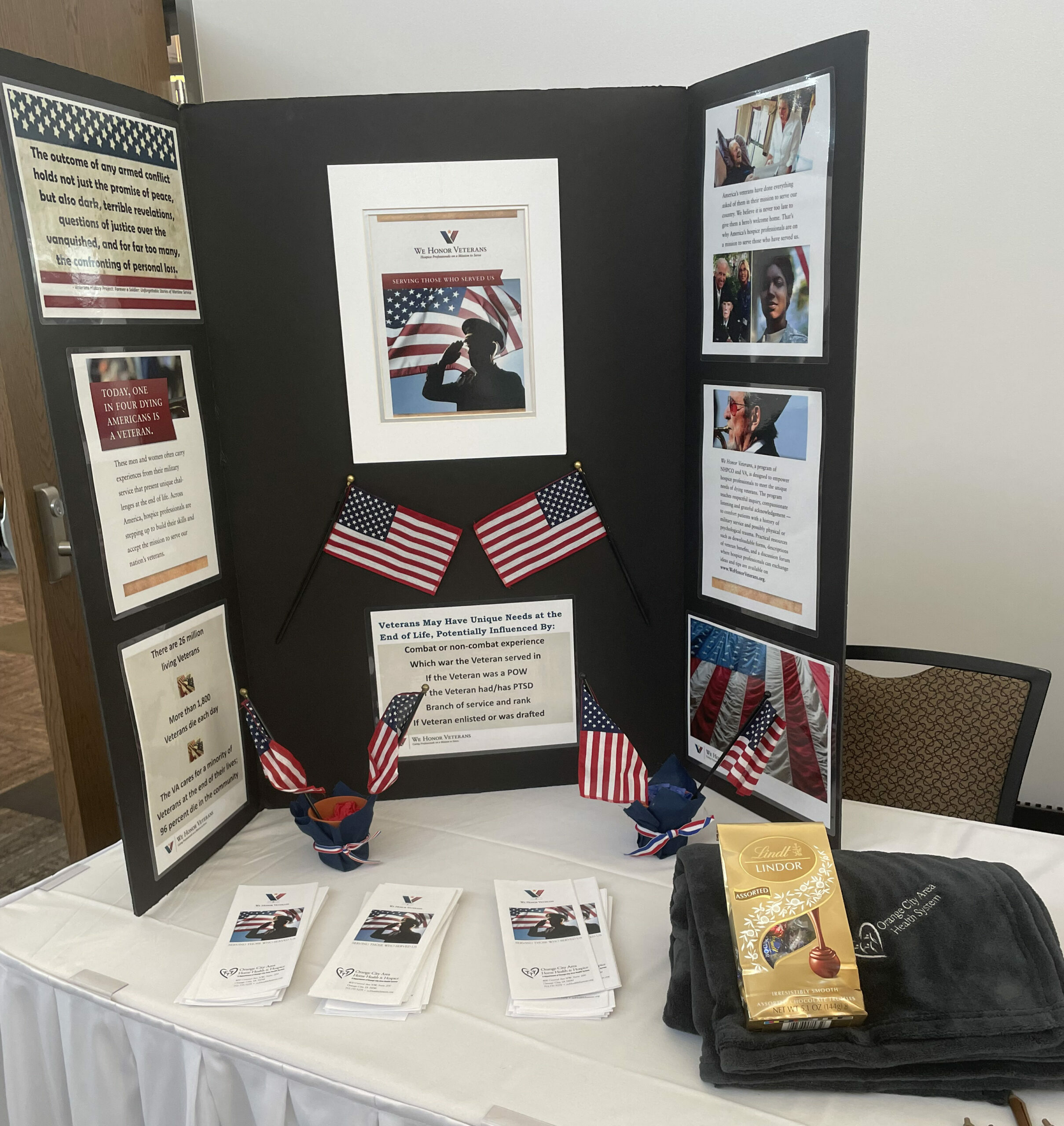 Orange City Area Home Health & Hospice is a We Honor Veterans Level 4 partner. Our staff was pleased to participate in the Veterans’ Day breakfast hosted by the Sioux County Veterans Affairs and Sioux Center Hy-Vee. We displayed the Missing Man table, a special place to honor the memory of those who died or were missing while they served in the US Military. Our booth also provided educational materials for the We Honor Veterans program to the Veterans and their spouses.