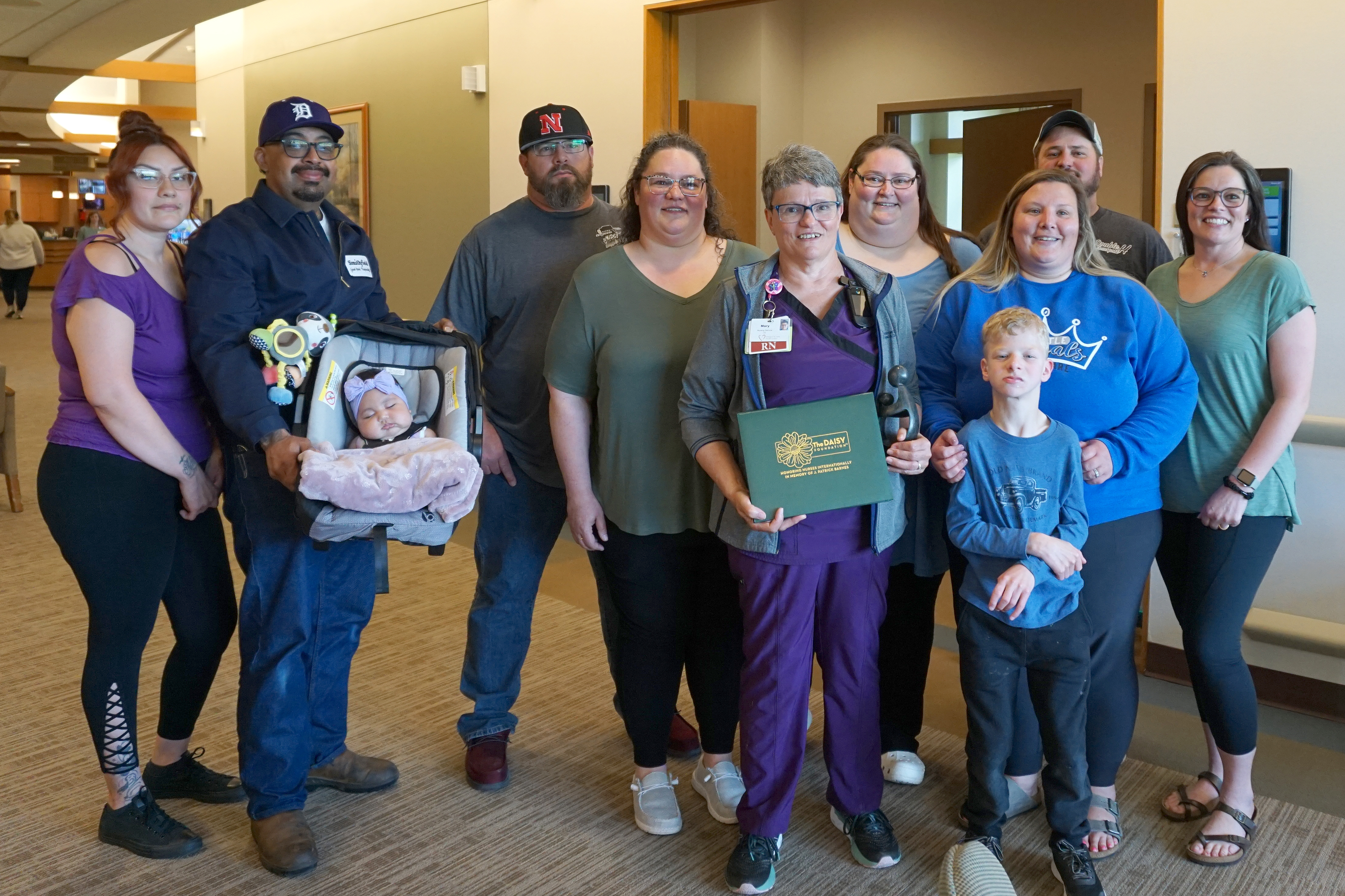 Family, co-workers, and one of the nominating patients were on hand to celebrate Mary's award.