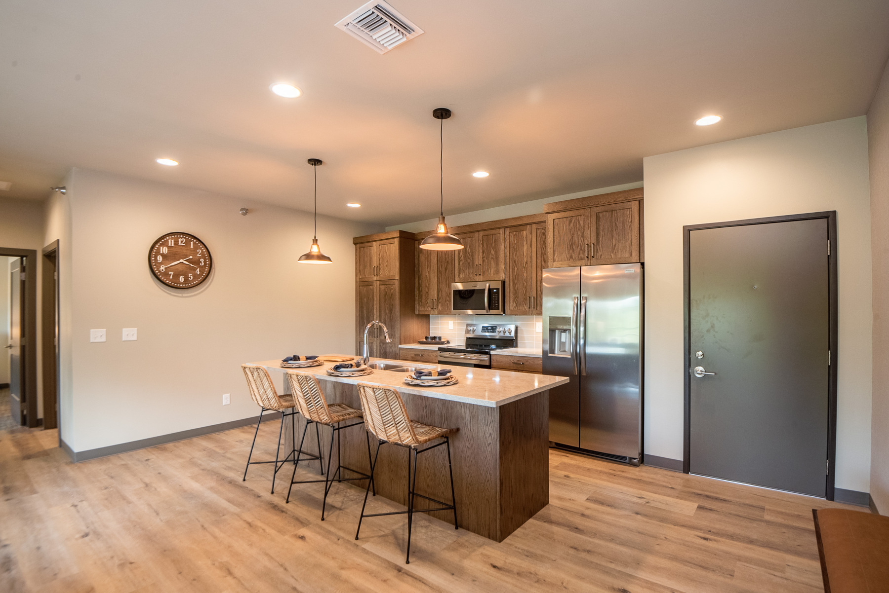 After 55, life should just be easy. No more steps to get inside your home. No more cleaning rooms you never use. Located in Orange City, Iowa, our Kanaal Huis community was built with those over 55 in mind. The community itself features everything you need to stay connected to friends and family while downsizing to a more functional home like a pond, shared space and city bike paths. Kanaal Huis features 36 units that consist of four 1-bedroom units, four 1-bedroom plus a den units, and the remaining 28 will be 2-bedroom units.