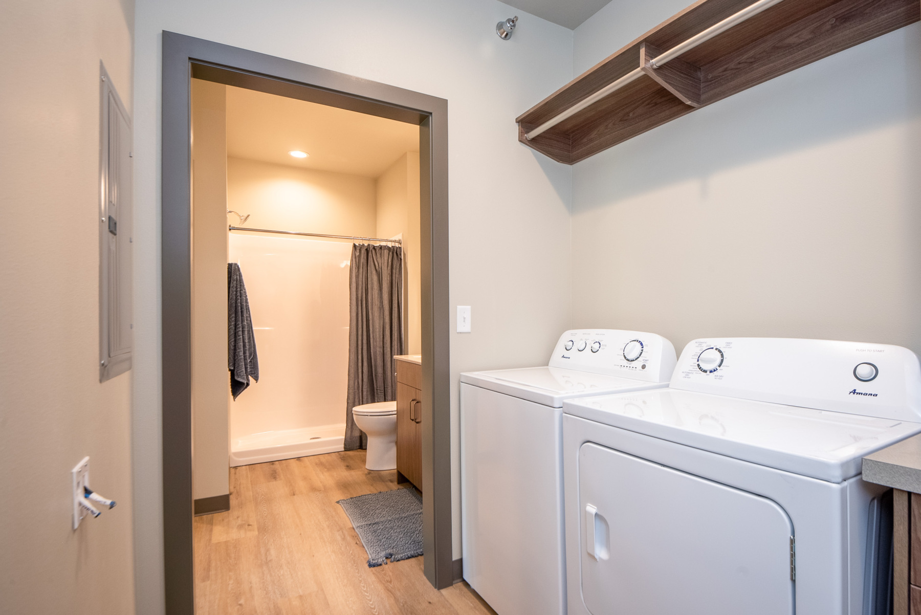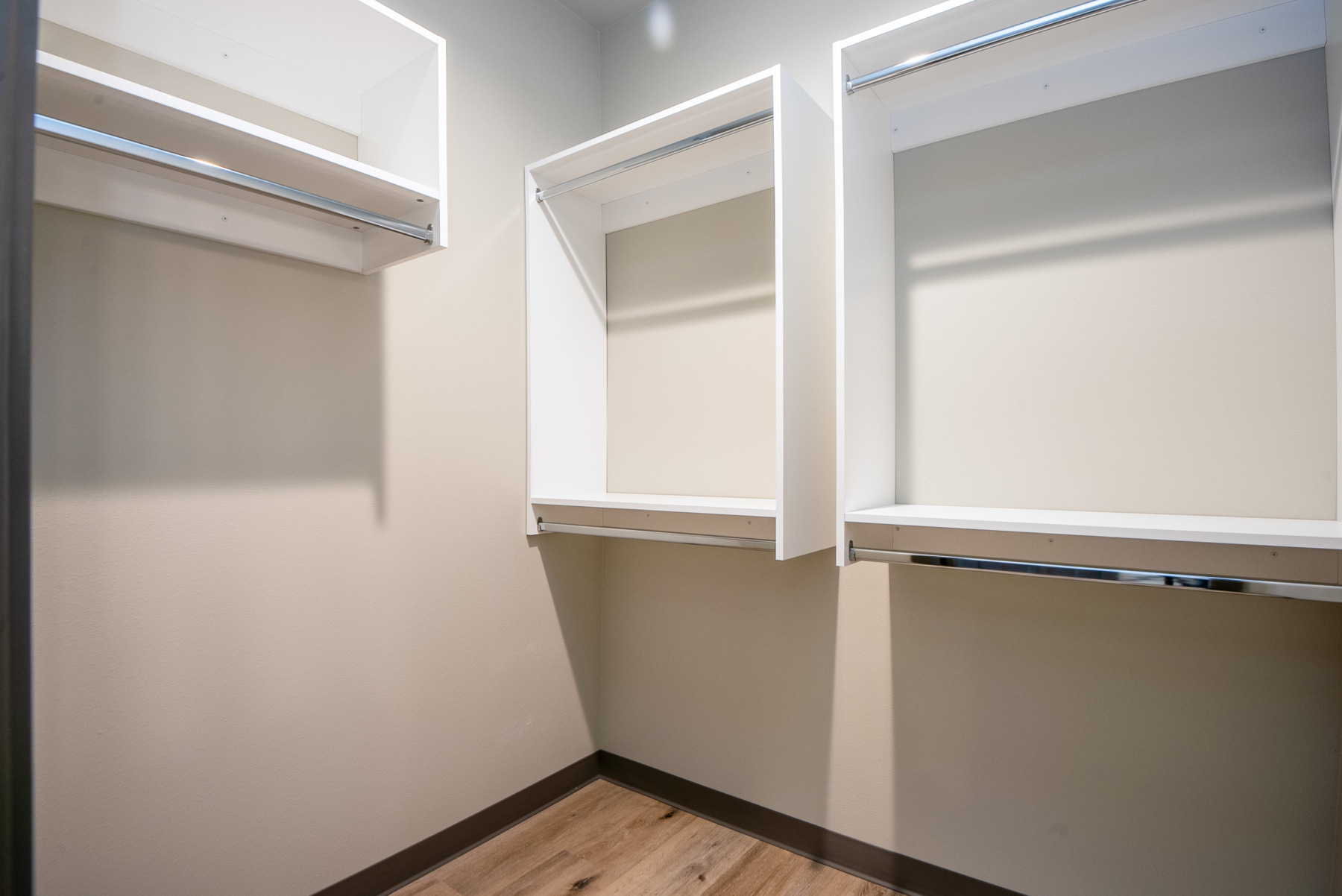 Each unit comes with a heated garage. Garages are not specific to a unit; they are selected by the resident on a first-come, first-served basis. The depth of the garage will be approximately 28 feet, which will allow for storage in front of vehicles. Residents with more than one vehicle will have access to outside parking spaces or may sublease from another resident if there are unused spaces.