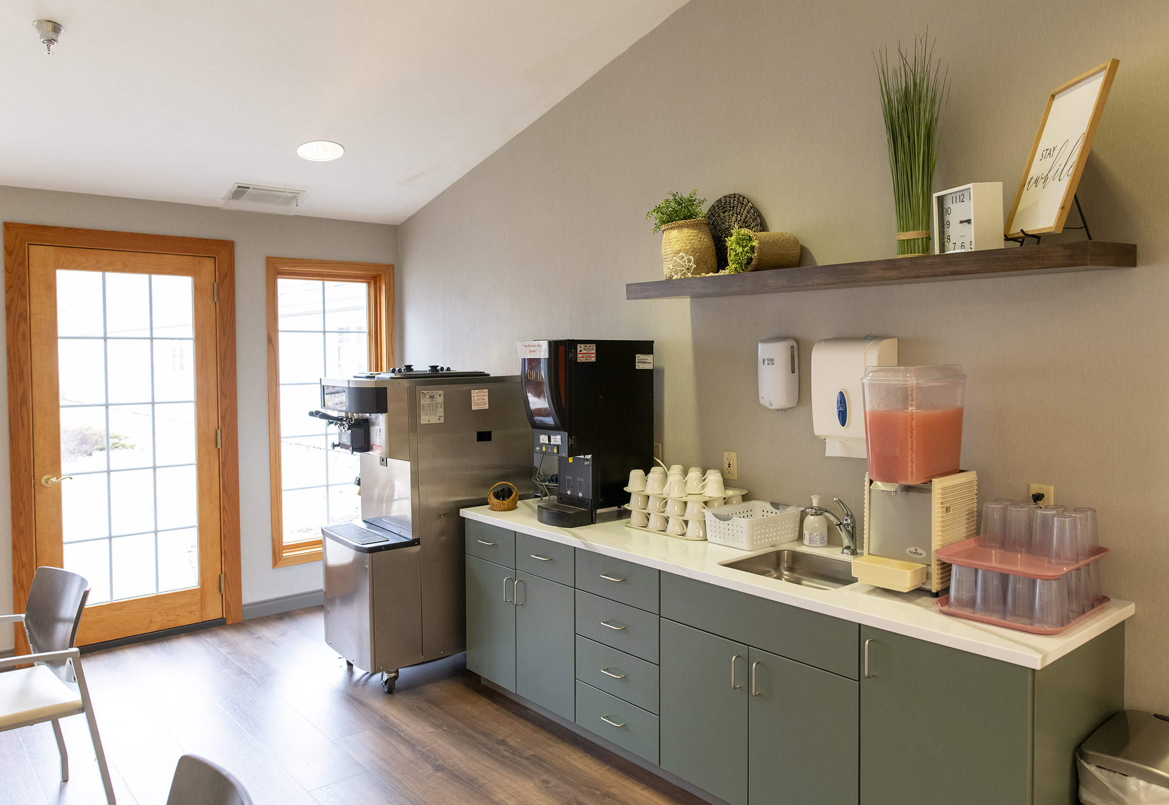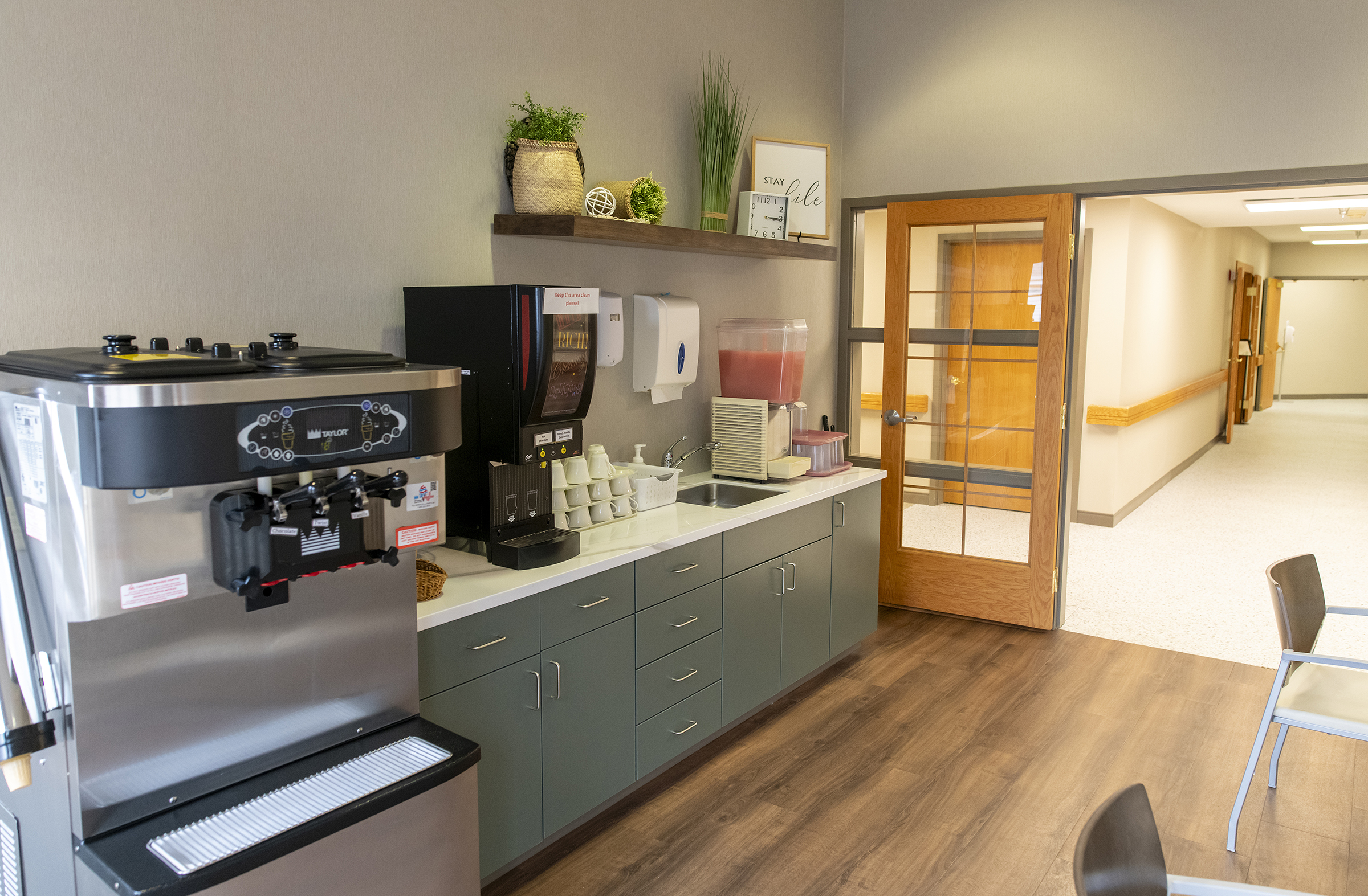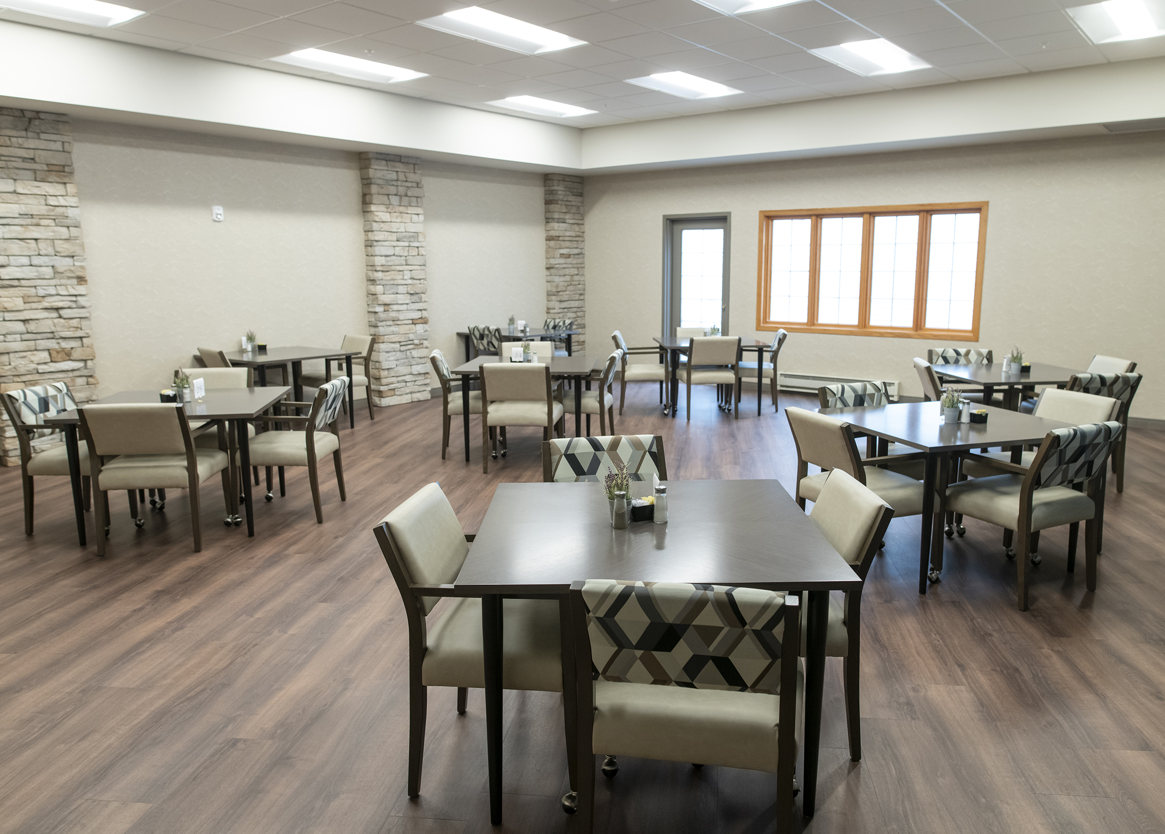 If a resident needs to move to a different level of living assistance, they have priority admission at Prairie Ridge Care Center, located next door. Prairie Ridge Care Center is an 89-bed skilled nursing facility with an 11-bed memory care cottage.